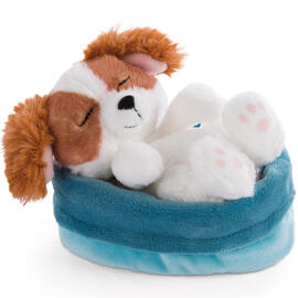 Nici Kuscheltier "Welpe Cockerspaniel", 12cm im blau-türkisen Körbchen